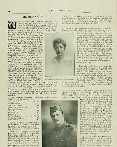 One of the best sources for those studying Newfoundland women and World War I is The Distaff, available through the Digital Archive Initiative (DIA) of Memorial University’s Queen Elizabeth II Library.